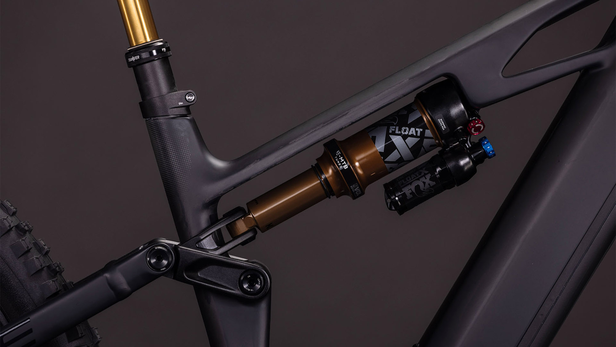 Zadný tlmič: Vidlica Fox Float X Factory, 230x60mm (27,5: 210x55mm), nastaviteľná LSC s 2-polohovou páčkou, povrchová úprava Kashima, hardvér Shox: predná: 30x8mm, zadná: DU-Bushing 12,7mm